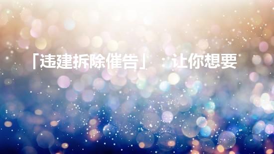 摘要本文讨论了拆除行业中的一个重要问题——违建拆除催告对业主的影响,以及为什么业主可能会想要保外就医。首先,本文讲述了此问题的背景和重要性,引发读者的兴趣。然后,本文从4-6个方面进行详细阐述,包括设...