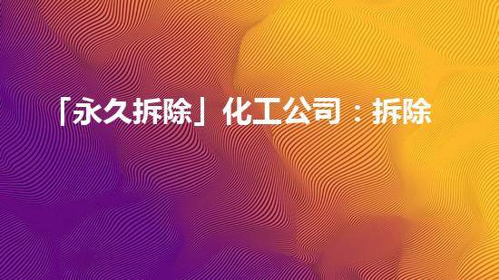 「永久拆除」化工公司:拆除你的污染,铸就永不污染的未来