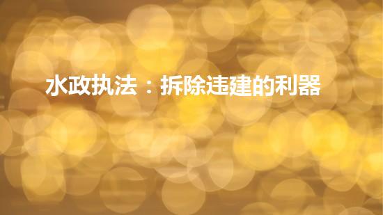 摘要:本文将介绍水政执法在拆除违建方面的利器。在现代社会,随着城市化进程的不断加快,随之而来的是各种各样的违建,对城市环境和居民安全造成了严重的影响,因此政府相继出台了各种法规对违建进行打击,水政执法...