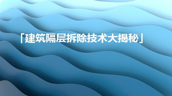 摘要:随着时间的推移,建筑物需要进行隔层拆除,而隔层拆除技术的的发展和改进,已经成为建筑拆除中一个重要的领域。本文以「建筑隔层拆除技术大揭秘」为主题,对隔层拆除技术进行了专业深入的阐述。本文共分为四个...