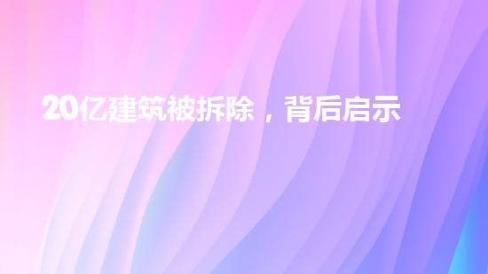 摘要:最近,一座价值20亿的建筑被拆除,这背后启示千载!这件事引起了人们的关注,一些人认为这是对资源的浪费,另一些人认为这是顺应市场调整的自然结果。本文作者作为一名拆除行业专家,从多方面对这座建筑被拆...