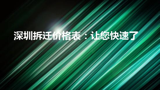 深圳拆迁价格表:让您快速了解房屋拆除费用!