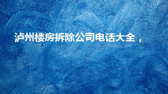 泸州楼房拆除公司电话大全,快速解决您的房屋问题