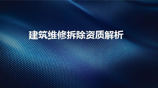 摘要:建筑维修拆除资质解析是一个热门话题,随着人们对建筑安全和环境保护的重视,建筑维修拆除需要严格的资质要求。本文将从四个方面,分别是拆除资质的意义、拆除资质的类别、拆除资质的申请流程和拆除资质的管理...