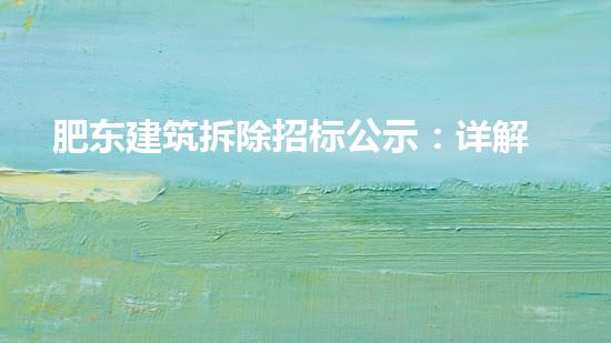 摘要:本篇文章将介绍肥东建筑拆除招标公示,并详解该公示中的招标要求。在本文中,我将从专业化工技术的角度,对拆除行业的四个方面进行深入的讲解。正文:一、项目背景肥东是位于安徽省合肥市的一个县级市,由于城...