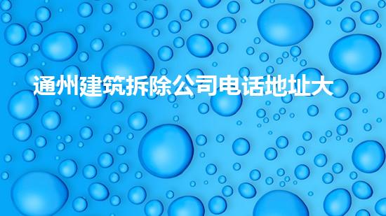 摘要:通州建筑拆除公司电话地址大全,一键获取!本文将从4-6个方面对其进行详细介绍。本文的目的是为了方便需要拆除服务的人们找到专业的公司,同时也让大家了解到拆除行业的发展和技术趋势。正文:1. 公司简...