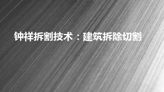 摘要:钟祥拆割技术旨在创新建筑拆除切割新思路,本文将从专业角度对其进行详细深入的阐述。巴洛仕集团化工厂拆除案例为例,本文将探讨钟祥拆割技术在建筑拆除行业中的应用,并提出建议与未来研究方向。正文:一、钟...