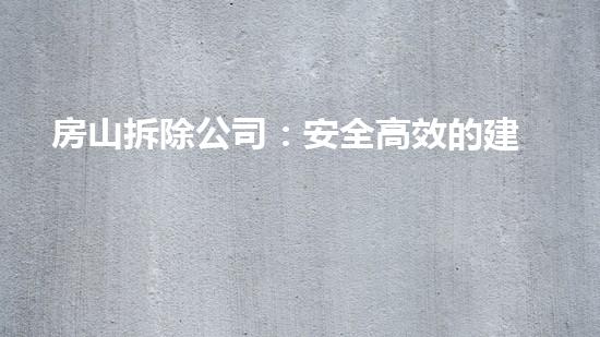 摘要:房山拆除公司是一家专业从事建筑切割服务的公司,致力于为客户提供高质量、安全、高效的服务。本文将从专业的角度对房山拆除公司进行分析,全面介绍其安全高效的建筑切割服务。正文:一、专业工具和设备房山拆...