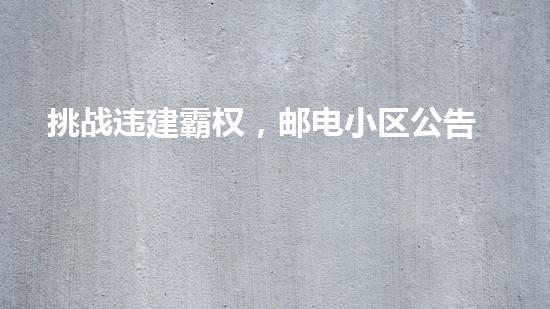 摘要:随着城市化的不断推进,违建问题也愈演愈烈。然而,在挑战违建霸权的过程中,住宅小区的居民通常无从下手。然而,近日发生在邮电小区的一幕公告却为居民提供了一丝希望。本文以挑战违建霸权,邮电小区公告惊人...