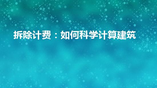 摘要:随着城市建设的不断扩大,建筑物的拆除成为了一个十分重要的环节。作为一个化工技术专家,拆除计费也成为了我们关注的一个话题。本文主要从几个方面对拆除计费进行了详细的专业深入阐述,其中包括:人工费用、...