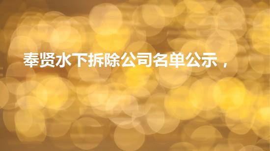 奉贤水下拆除公司名单公示,引爆暗流!