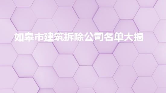 摘要:如皋市建筑拆除公司名单大揭秘!在这篇文章中,我们将介绍如皋市拆除公司的名单,让读者更好地了解在地区内可用的资源。正如在其他城市一样,拆除公司在如皋市也提供一系列的服务,如清洁、回收等等。本文旨在...