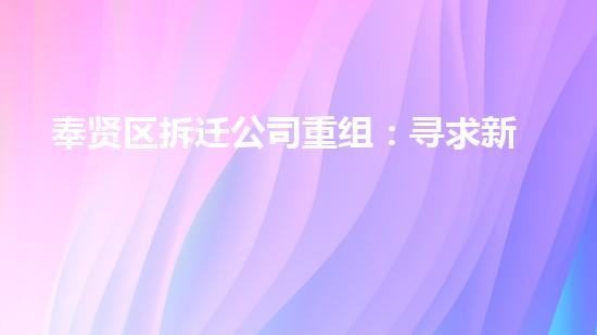 奉贤区拆迁公司重组:寻求新发展