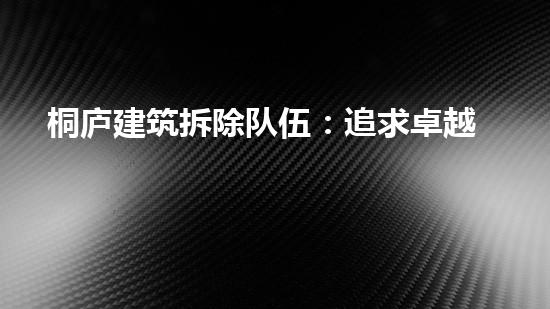 摘要:桐庐建筑拆除队伍是一支致力于追求卓越、拆除无痕的专业队伍。本文将从专业角度出发,详细阐述桐庐建筑拆除队伍的特点和优势。同时,对于拆除行业的一些关键问题也会进行深入分析和讨论。正文:1. 专业人员...