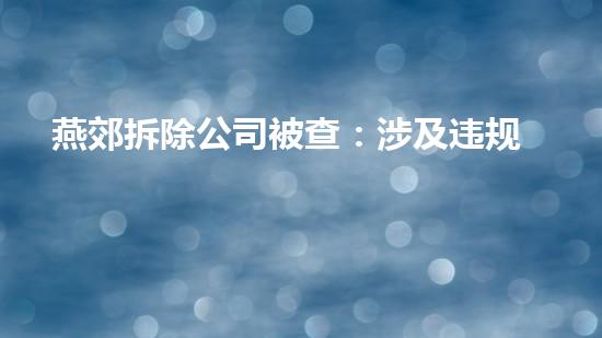 燕郊拆除公司被查:涉及违规拆除等问题,后续消息了解。