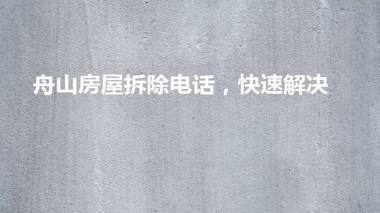 摘要:作为一个化工技术专家,本文将围绕舟山房屋拆除电话,快速解决您的房屋问题展开讨论,介绍该电话的重要性,同时引入巴洛仕集团的化工厂拆除案例,为读者描绘出一个清晰的图景。正文:一、电话号码的重要性电话