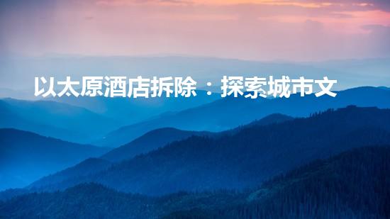 摘要:本文以以太原酒店拆除为切入点,探讨城市文化遗产保护之路。本文从拆除行业专家的角度,深入阐述以太原酒店拆除过程中需要注意的方方面面,旨在帮助读者更好地了解城市文化遗产保护问题。正文:一、历史价值的...