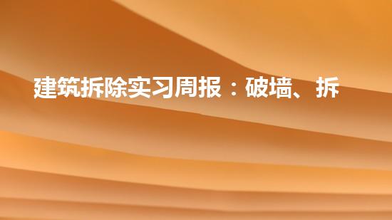 建筑拆除实习周报:破墙、拆屋、危机四伏