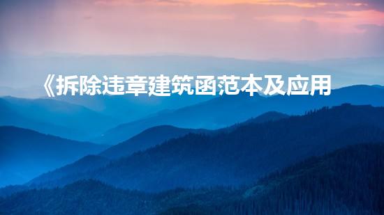 摘要《拆除违章建筑函范本及应用》是一份有关拆除行业的重要文献,该文献包含了许多有关拆除违章建筑的实用信息。本文将从专业化角度出发,对该文献的各个方面进行详细的分析和阐述。正文一、法律法规的应用法律法规...
